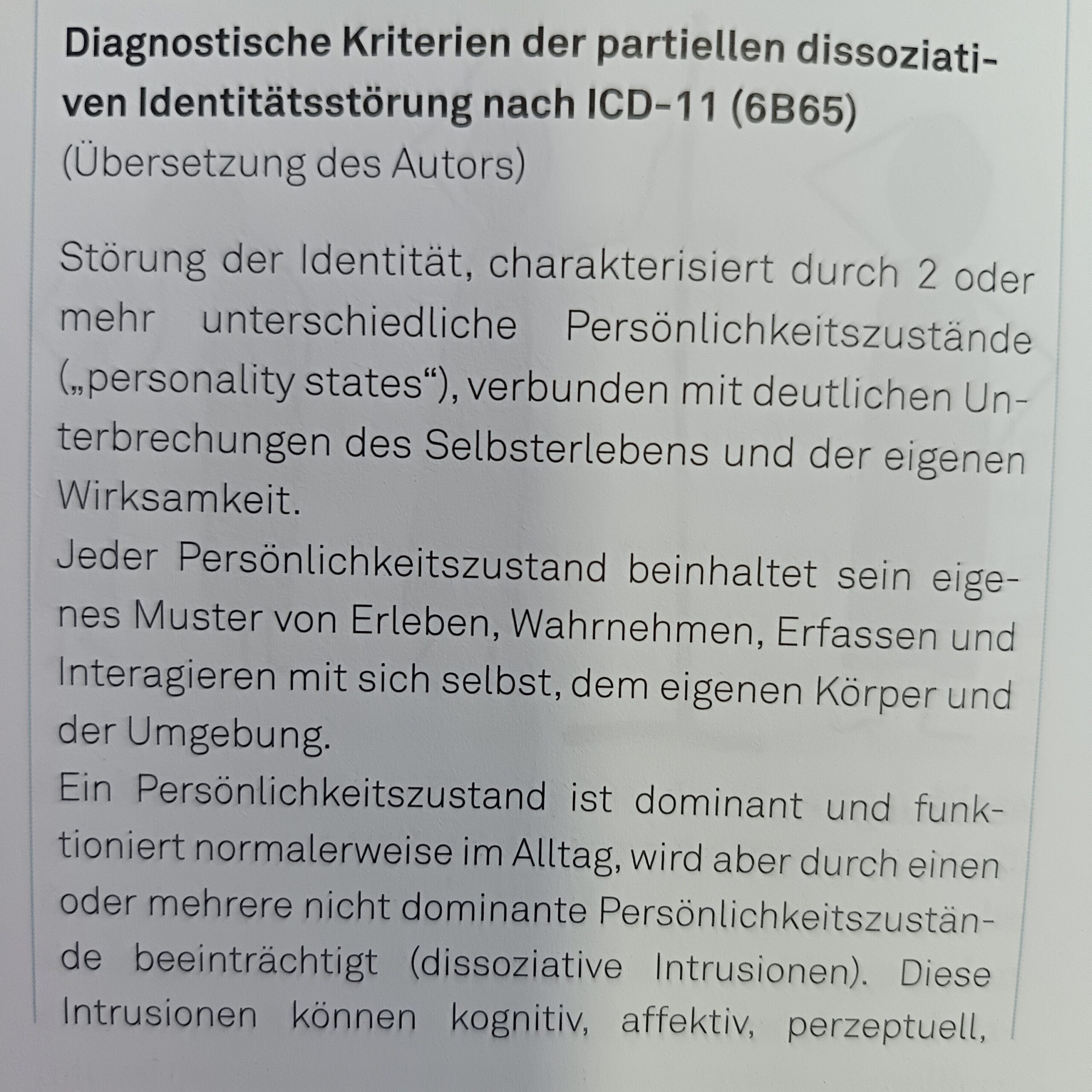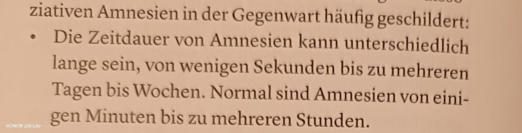 >>In der ICD-11 wird nur die posttraumatische dissoziative Amnesie aufgeführt: „Unfähigkeit, wichtige autobiografische Erinnerungen abzurufen, typischerweise von kürzlichen traumatischen oder stressvollen Ereignissen, unvereinbar mit normalem Vergessen“.<< – Jan Gysi
